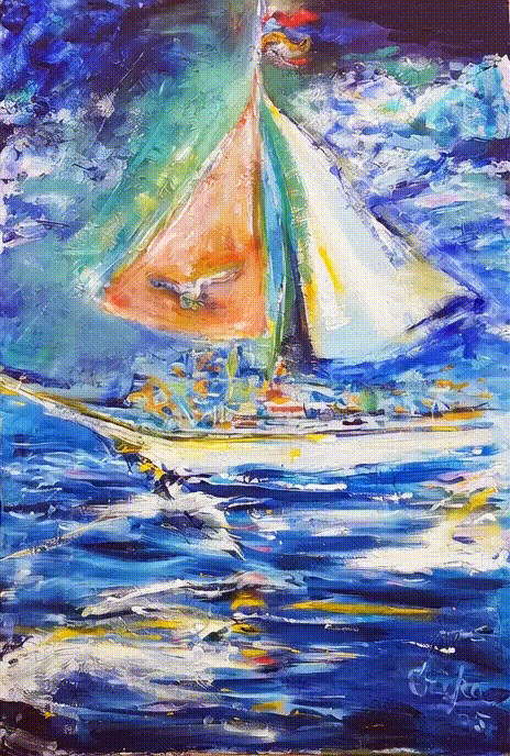 יאכטה כתומה וירוקה