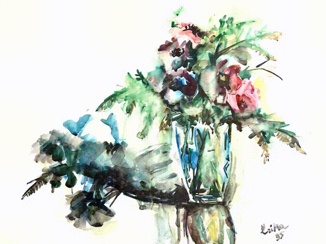 עירום ופרחים - צבעי מים